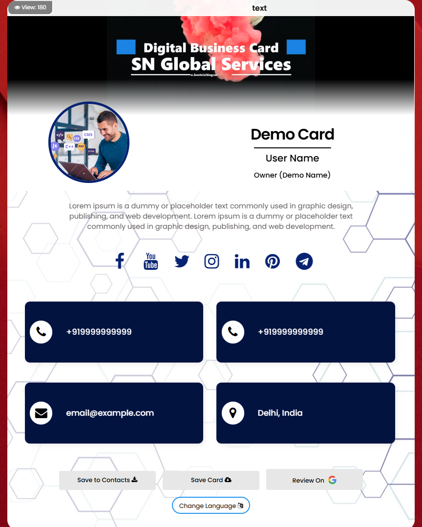 Now creating business card is very easy and free. Go digital share unlimited times.